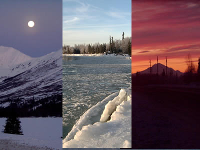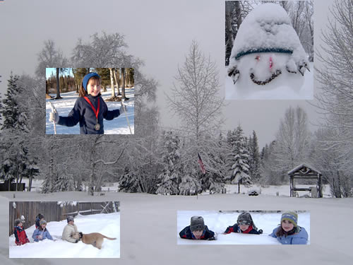 “…snow, snow, and more snow! It’s been a great winter, the snowiest we’ve seen in years, and everyone’s enjoying it very much! Skiing, sledding, snowmobiling, ice skating, ice fishing, and even a few jumps in the snow from the sauna have been the winter routine around these parts. The river has been frozen for a couple months now and the moose are wandering freely back and forth to the island. The moose are also showing up almost daily to munch on the lower branches along the river. The ski trail around Kenai Riverfront has been in excellent shape and the kids are all getting good at skiing. Hope its nice and wintery in your neck of the woods too!”