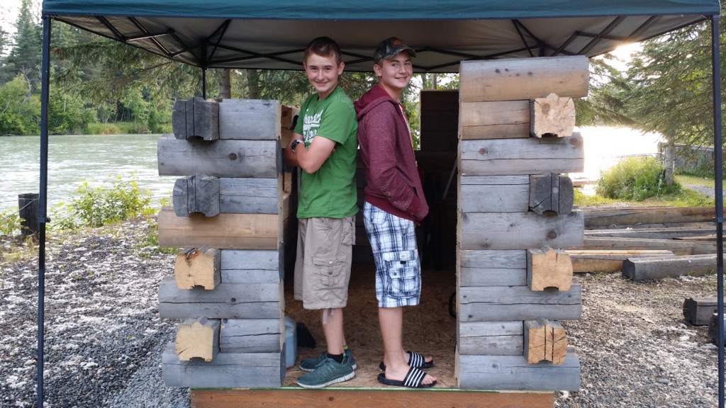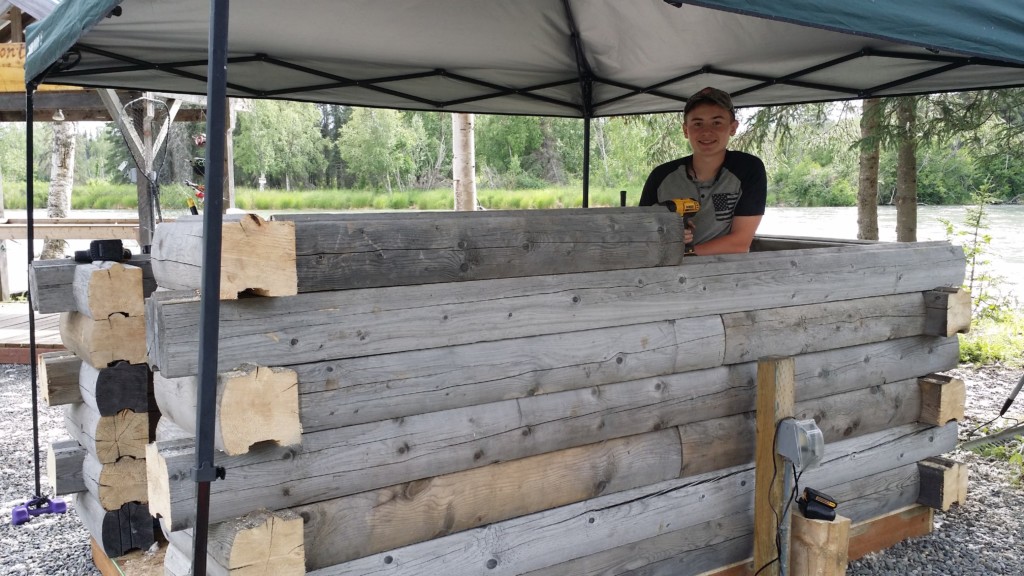 As you can see, we’ve been entrepreneurs in our family business from a young age. Since we were old enough to walk, we’ve been helping make sure our guests have a great time when they stay at Kenai Riverfront Resort, and in 2008 we took over operations of the Snack & Tack from our big sisters Jillian & Allison who first opened it in the summer of 2003, converting an old lemonade stand from up the road. In 2016 we rebuilt the Snack & Tack from that original 4 foot by 4 foot 20+ year old converted lemonade stand with log siding, to a real log cabin–10 foot by 6 foot–with enough door and ceiling height that we wouldn’t hit our heads anymore…no matter how much taller we get! Here are some pics from the project! |