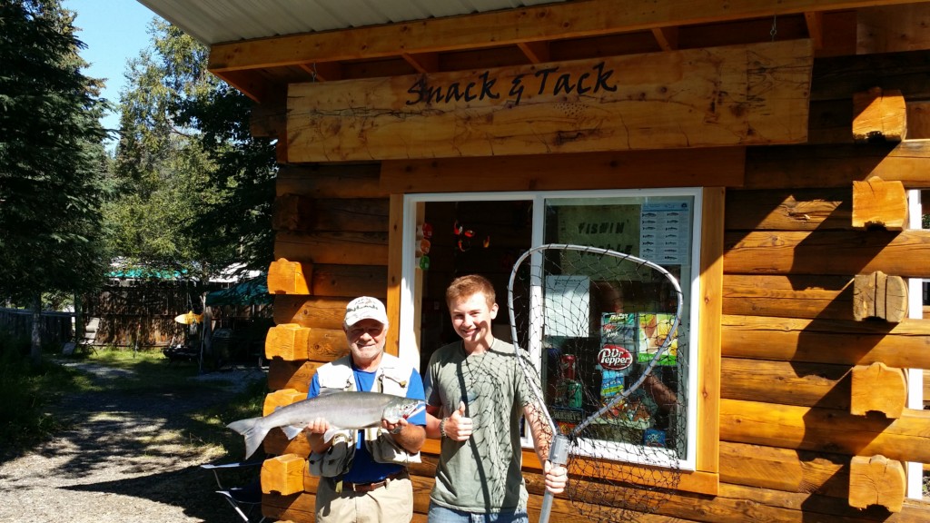 Every Summer, the “Snack & Tack” brings you all the fishing tackle, rental fishing poles and know-how you need to conquer the Kings, wrestle the Reds, snare the Silvers, punch the Pinks, and reign in the Rainbows & Dollies! We’re Taylor & Cooper aka TJ & CJ, the twin fishing pros of the Snack & Tack and we look forward to welcoming you to the world famous Kenai River! We’re happy to help you get rigged & ready for some awesome fishing here on the riverfront! We have everything you need and you’ll save more time for fishing instead of running to town for snacks & tackle when you shop with us. Most importantly, we have the RIGHT tackle for this fishery, so skip the long lines in town and avoid wasting money on the wrong stuff from Walmart or other big box stores and let us get you hooked up! Our rental fishing poles for Red Salmon, Silver Salmon or King Salmon will save you the hassle of traveling with your fishing gear as well!